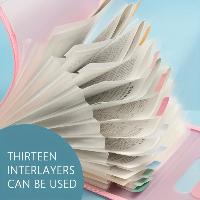 A4 Macaron Vertical Binding File Bag - 13 Cell Portable Organizer for Students and Office Supplies