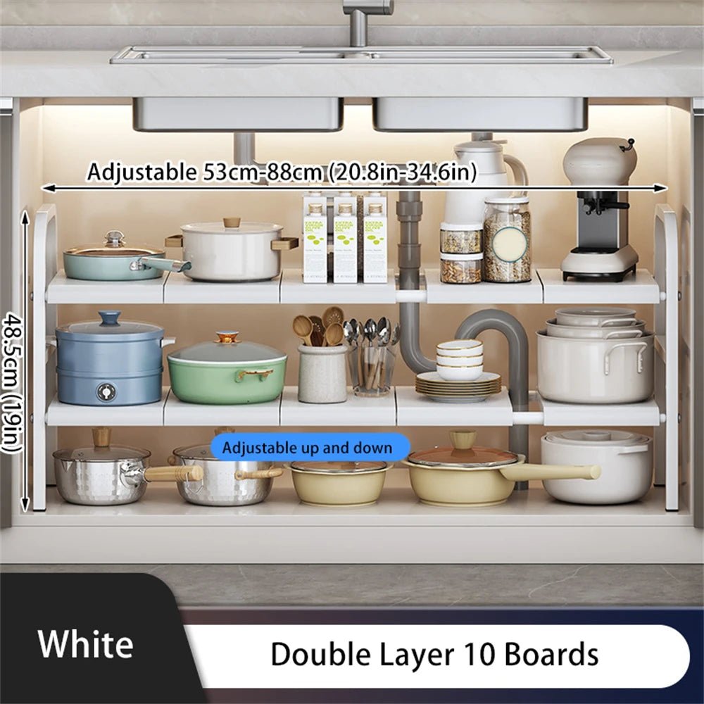 Expandable Under Sink Organizer - Multi-Use Cabinet Storage Rack with Removable Baskets