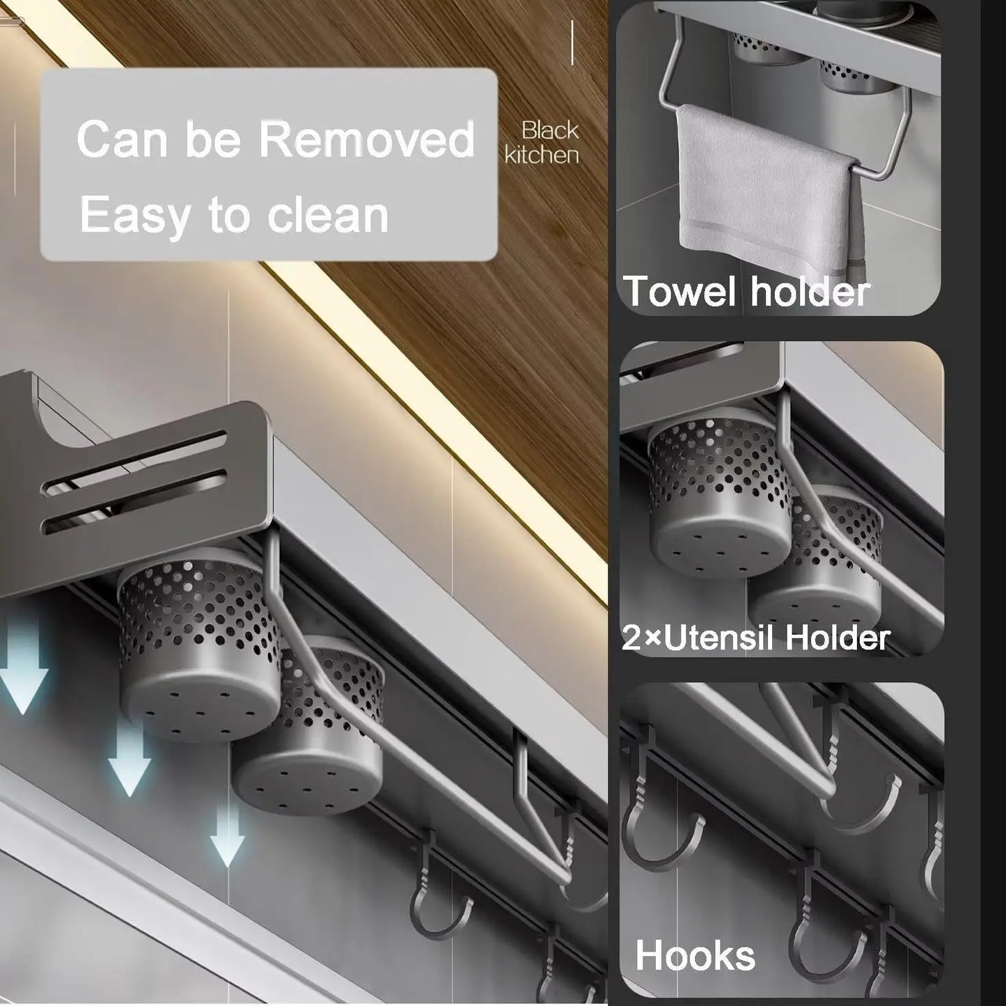 Wall-Mounted Spice Rack - Kitchen Storage Organizer with Hooks for Utensils and Tableware