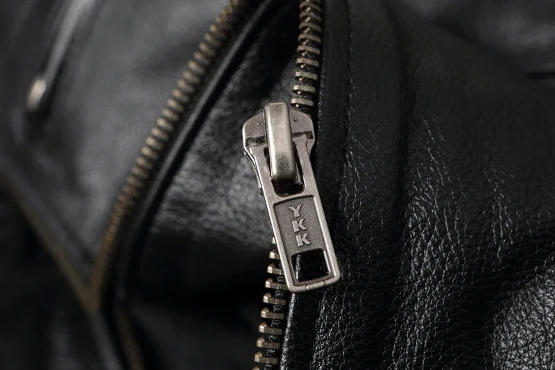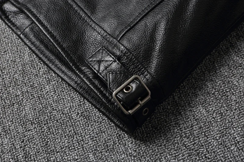 Mens Cowhide Leather Motorcycle Jacket - Plus Size Autumn Winter Stand Collar