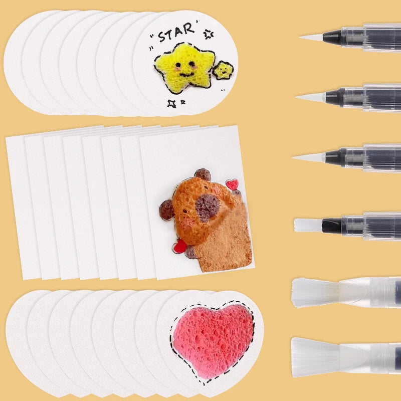 Draw anything you like on the paper or any surface, then gently apply water with a damp brush to see your artwork transform into a puffy masterpiece!