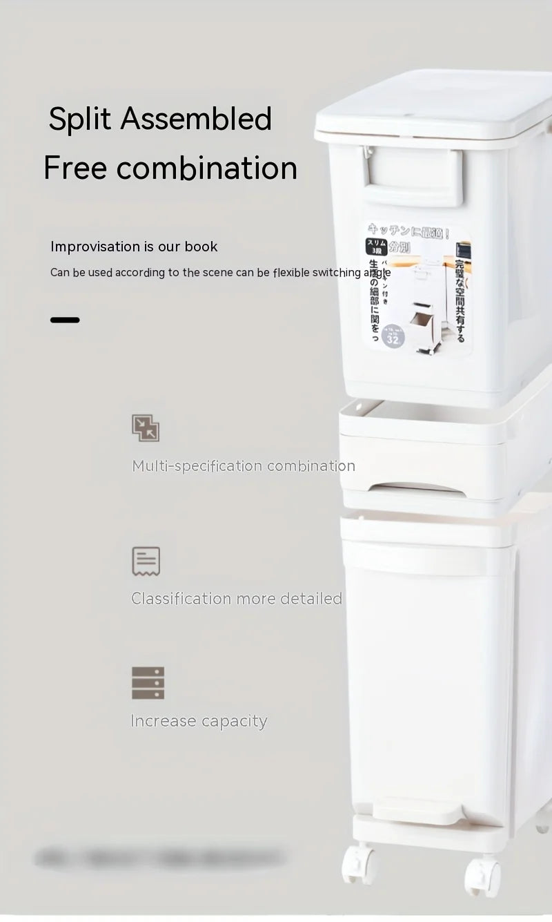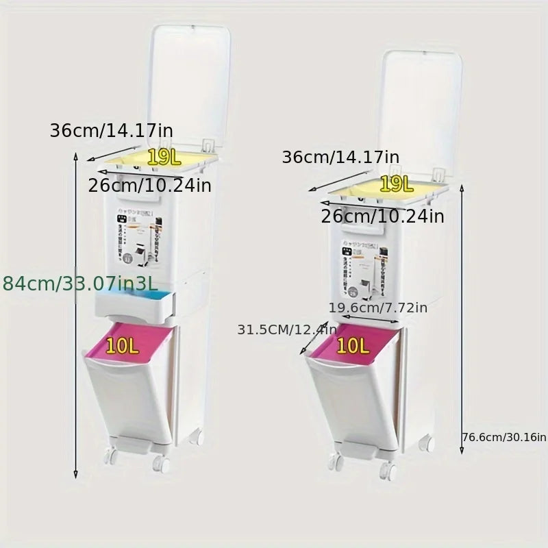 Large Dual-Compartment Trash Can - Durable Plastic Bin for DryWet Separation
