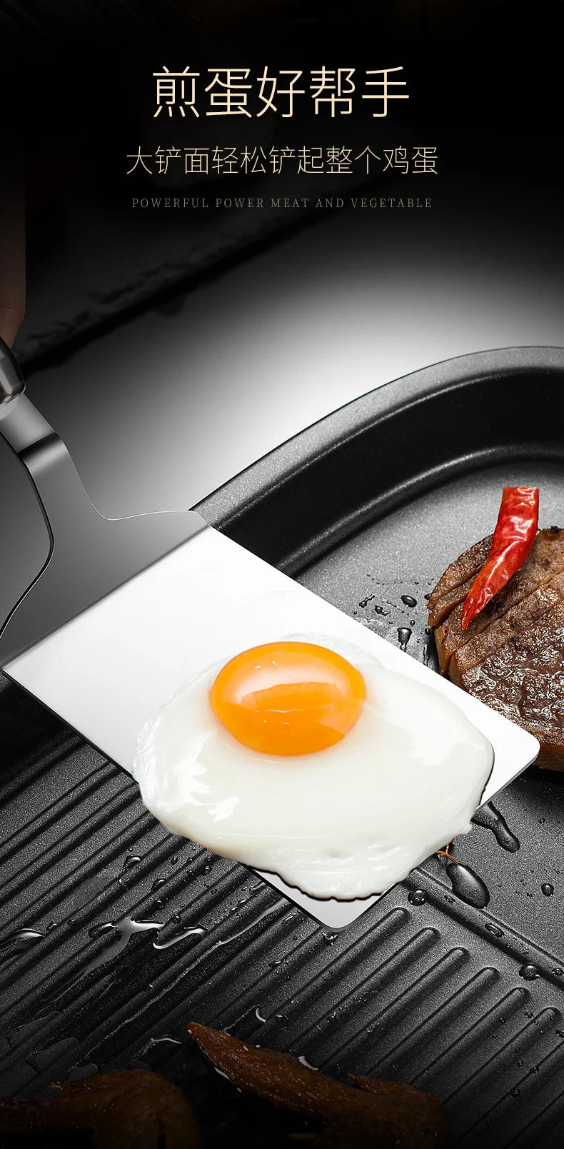 304 Stainless Steel Spatula - Non-Stick Barbecue Tongs with Wood Handle