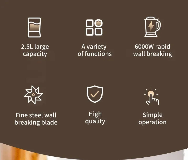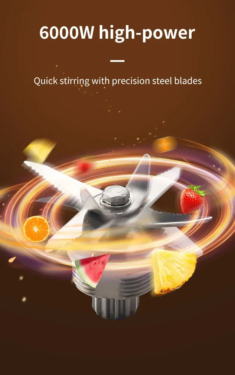 HIGH-SPEED BLENDING: This 6000W Food Smoothie kitchen blender features 4-blade stainless steel blades, making it ideal for crushing frozen fruit, ice cubes, milkshakes, cocktails, sauces and more.