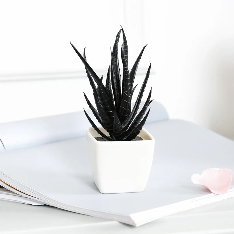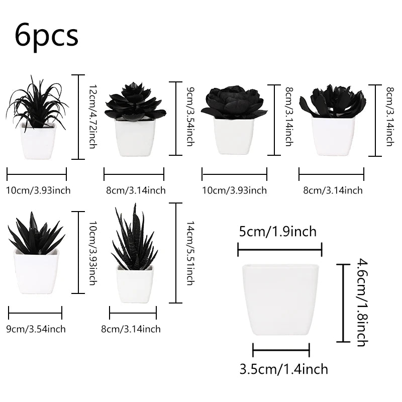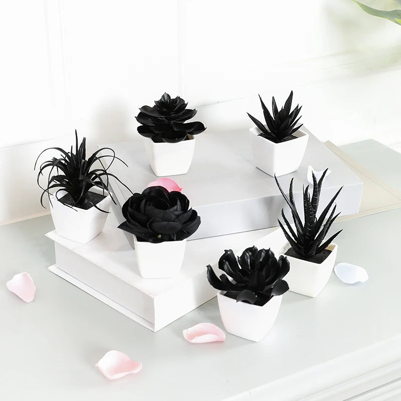 Black Artificial Succulents - 6PCS Small Potted Plants for Home Office Decor