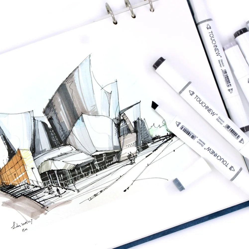 Grey Art Markers Set - 6Pcs Double-Tip Alcohol-Based Sketch Markers