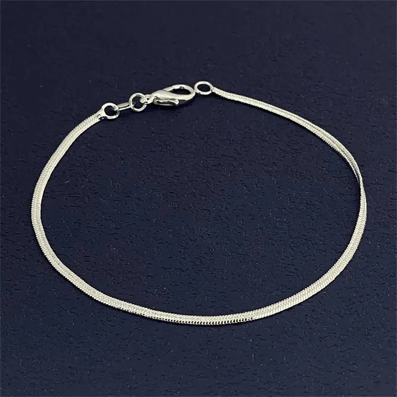 Sterling Silver Bracelet 2mm Flat Snake Bone Chain 20cm - Unisex Wedding Jewelry Gift