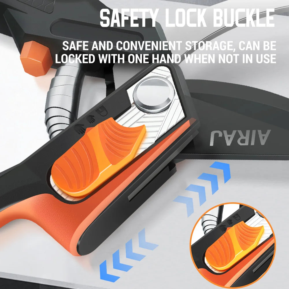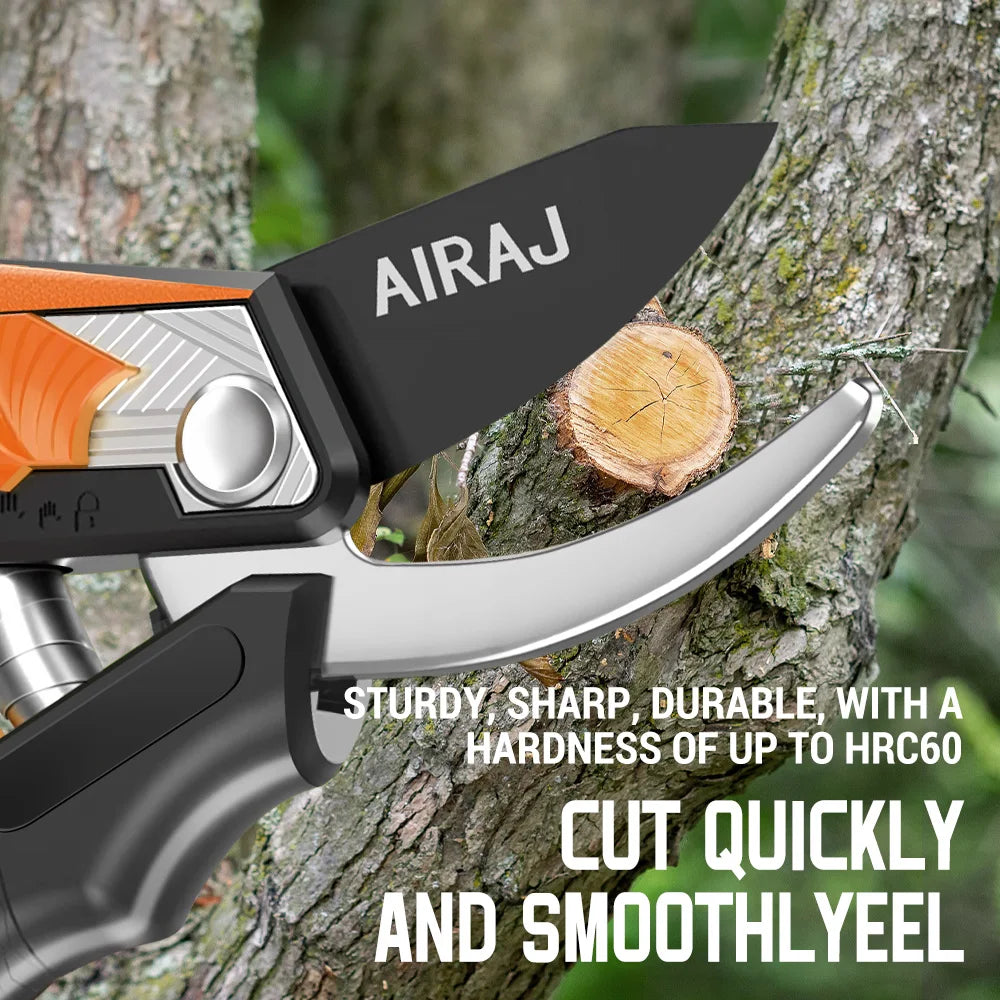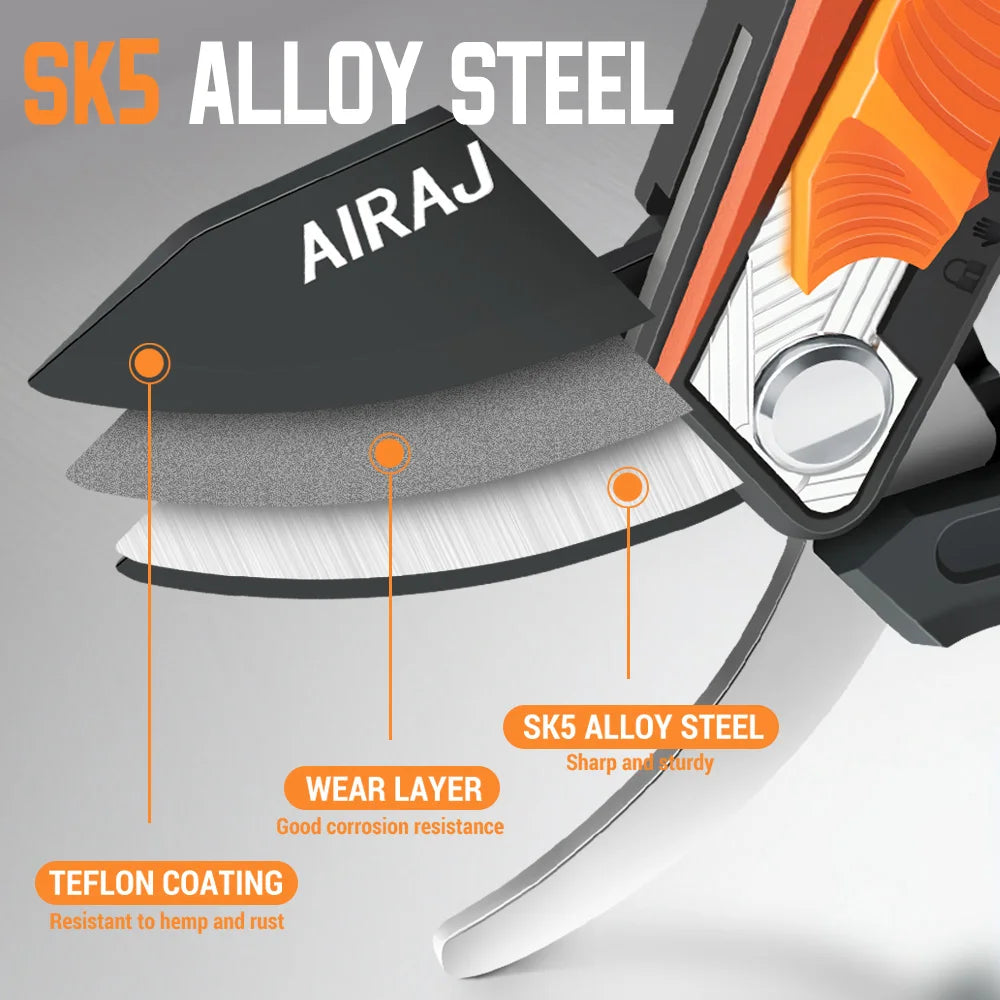 【 Outstanding Cutting Ability 】 Our scissors feature SK5 high-carbon steel blades and are enhanced through a unique heat treatment process, with a hardness rating of 58-60 HRC. The electric rod design provides three times the power each time it cuts, making it a perfect branch trimmer or flower stem cutter.