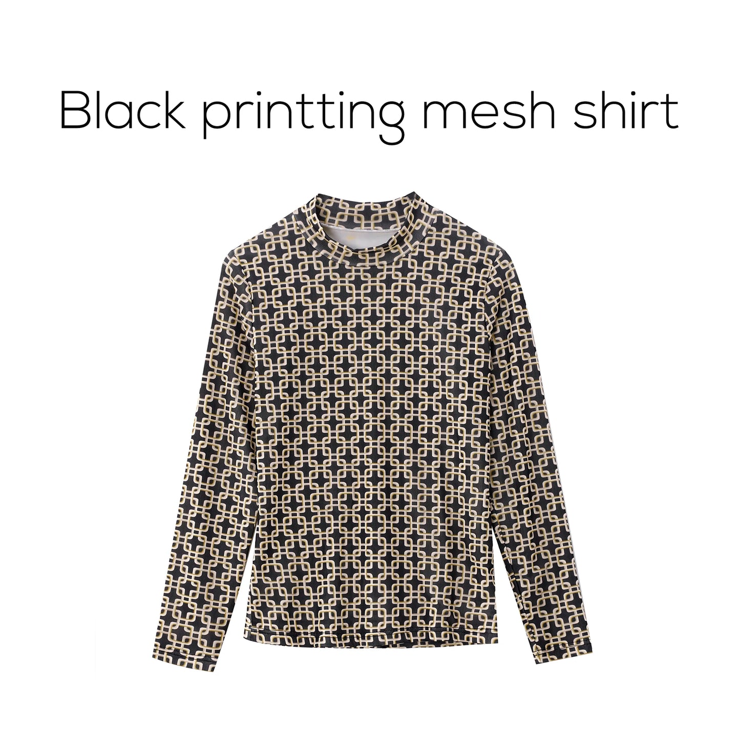 Printting Mesh Shirt Material: 95% Polyester and 5% Spandex(Mesh Shirt The Lining is Modal)