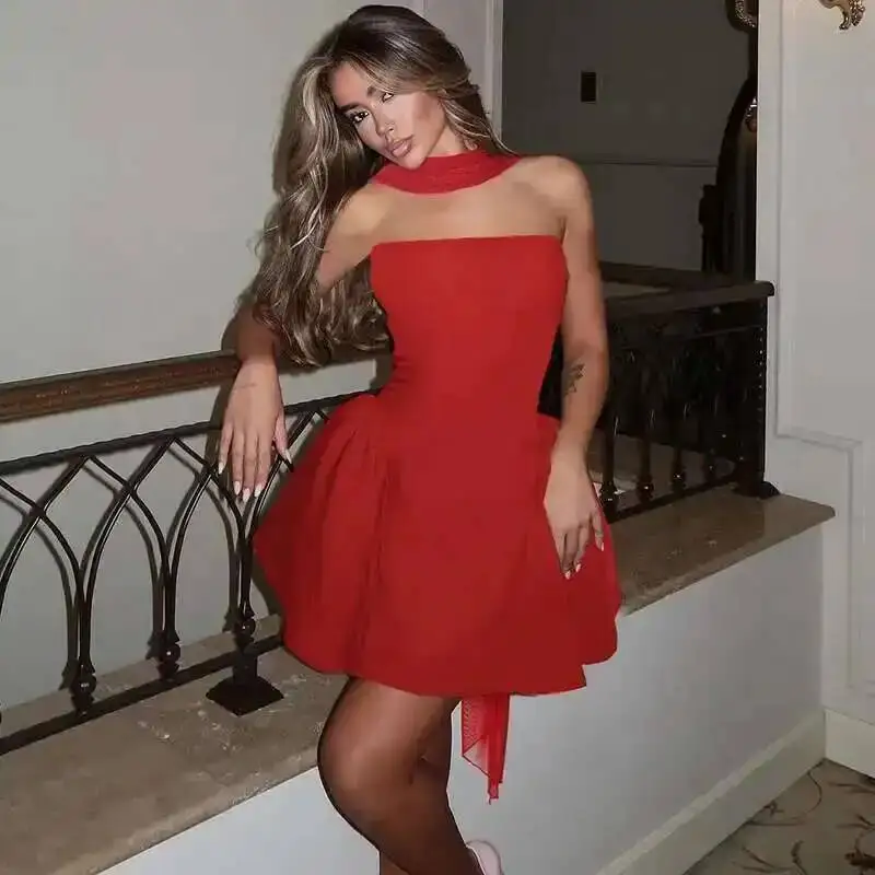 Sexy A-Line Dress - Off Shoulder Backless Mini Partywear With Empire Waist