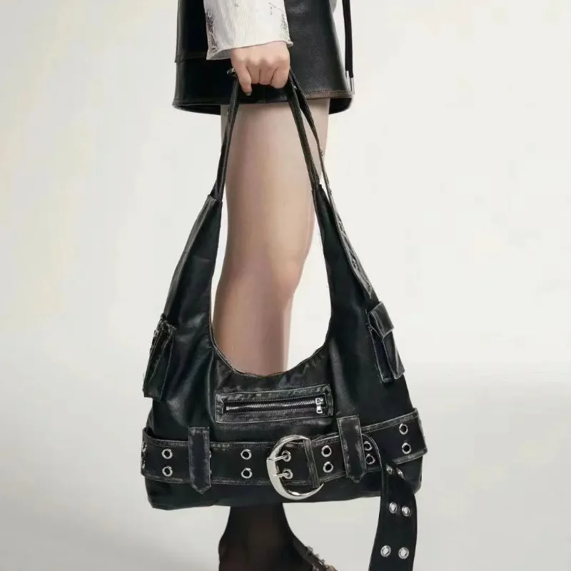 Women Shoulder Bags - Large Capacity PU Leather Handbag With Rivets & Multiple Pockets