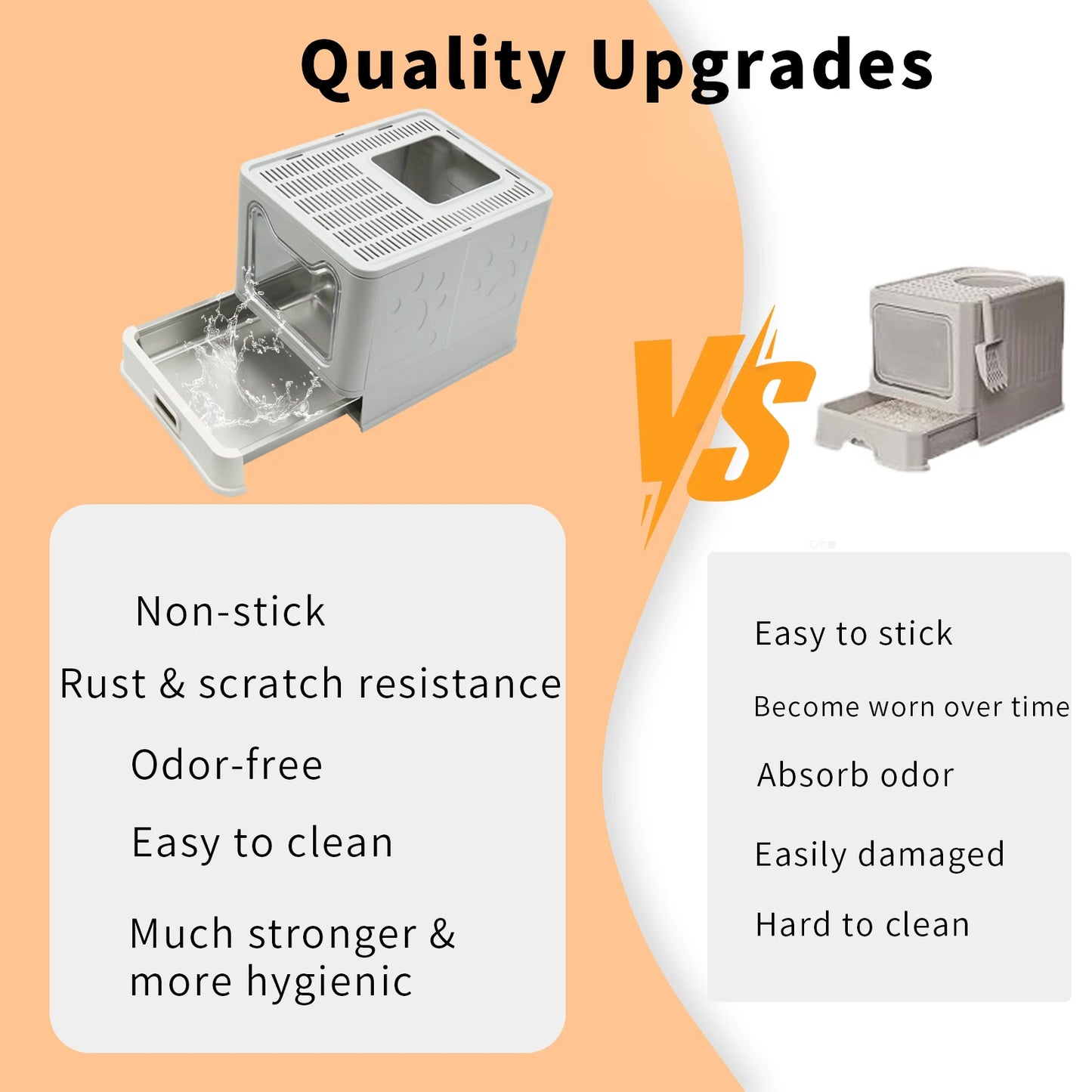 Bingopaw Stainless Steel Cat Litter Box - Front Entry with Lid Litter Scoop for Easy Cleaning