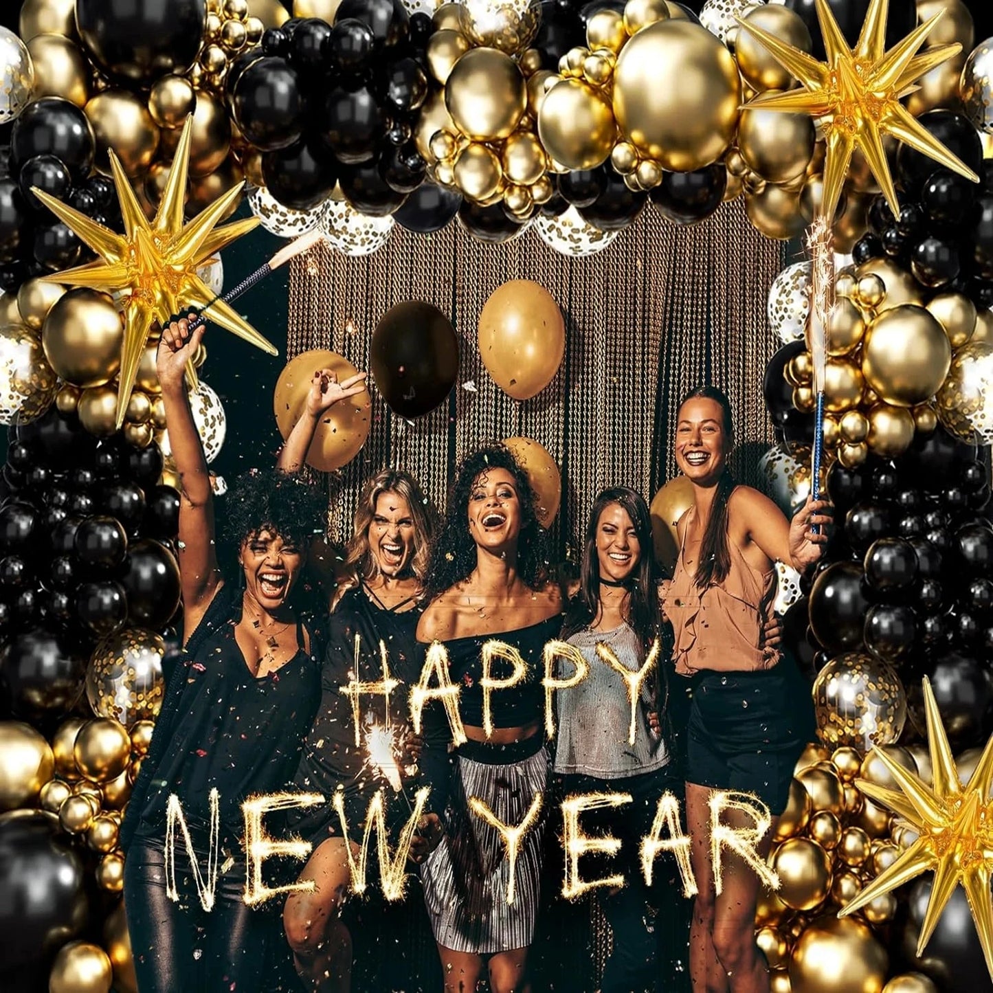 Black and Gold Balloon Garland Arch Kit - Wedding Birthday Party Decorations with Starburst Foil Balloons