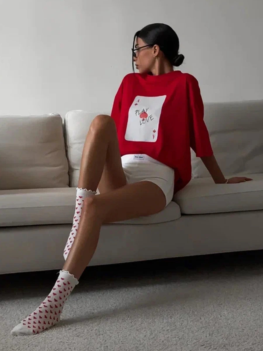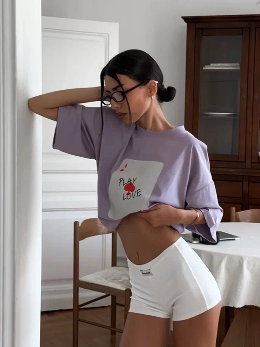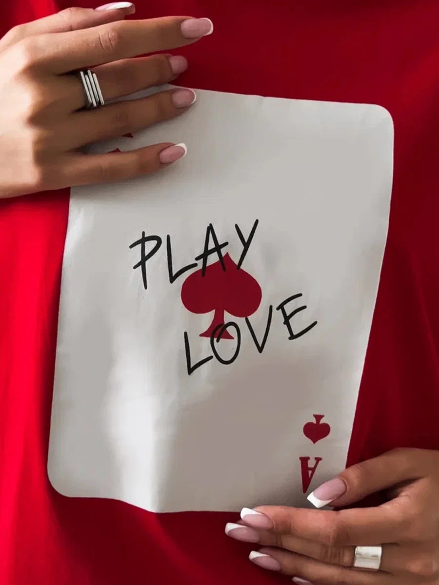 Bornladies Womens Cotton Poker Card T-Shirt - Casual O-Neck Short Sleeve Top