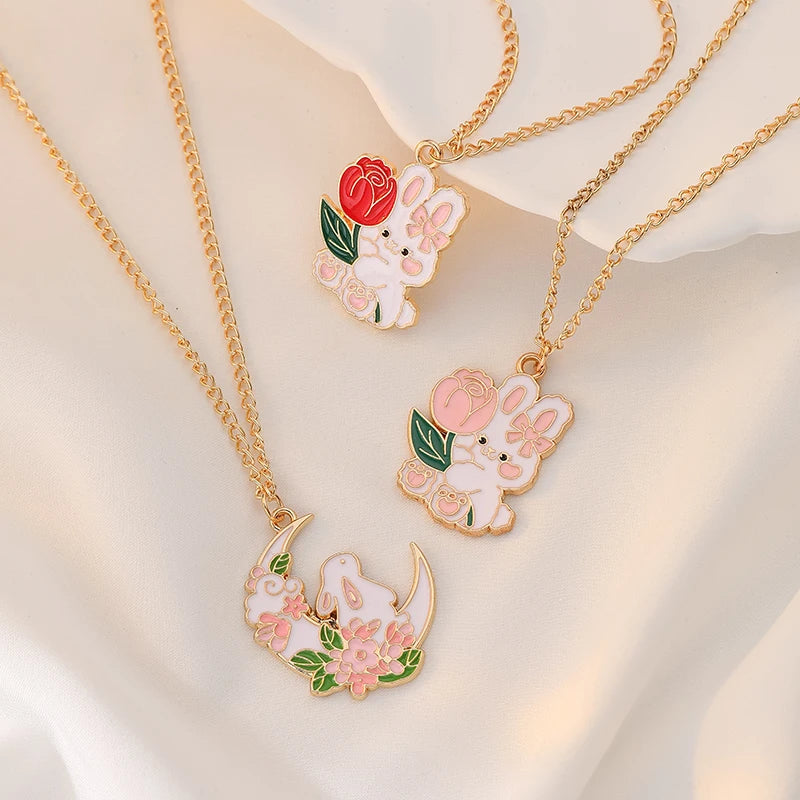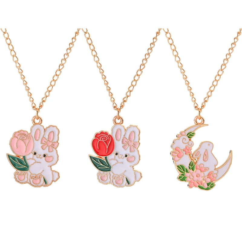 Bijoux: Cute Bunny Necklace, Moon Flower Rabbit Pendants