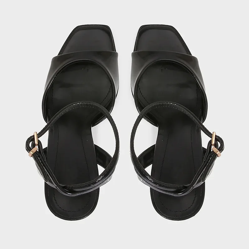Model Number: Black Patent Leather Ankle Strap Buckle Heeled Sandals Women