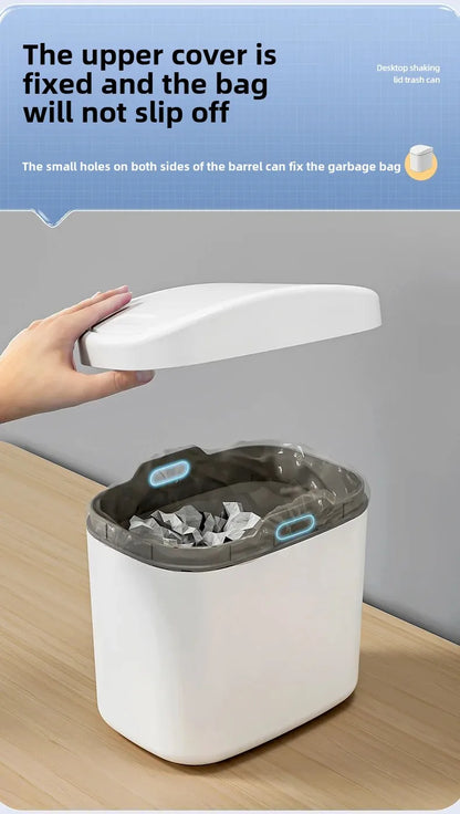 Mini Desktop Trash Can - Small Plastic Waste Bin with Shake Cover for Home Office