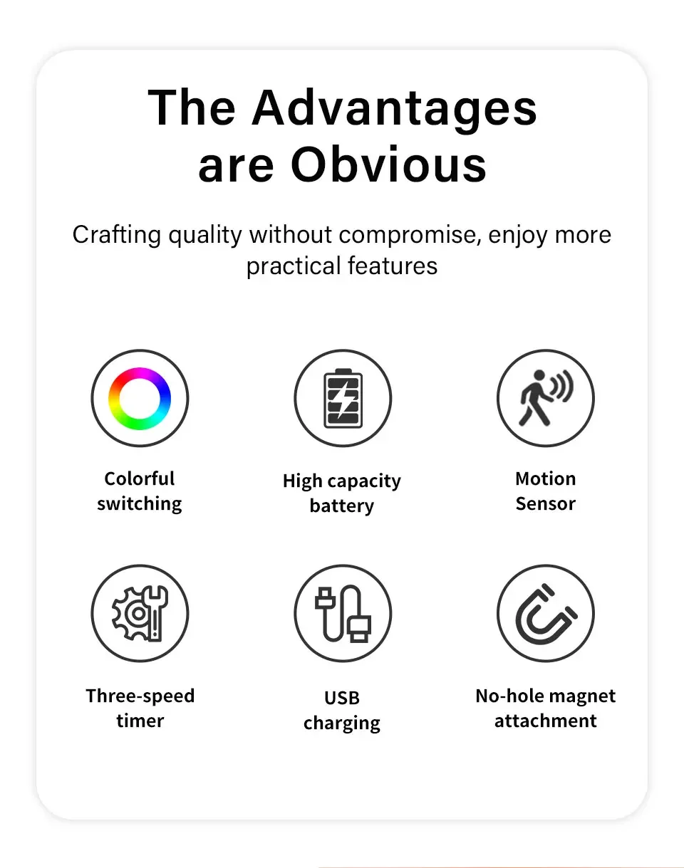 * Intelligent Detection: motion sensor, when detecting motion in the dark, it will automatically light up for 15 seconds and then turn off automatically.
