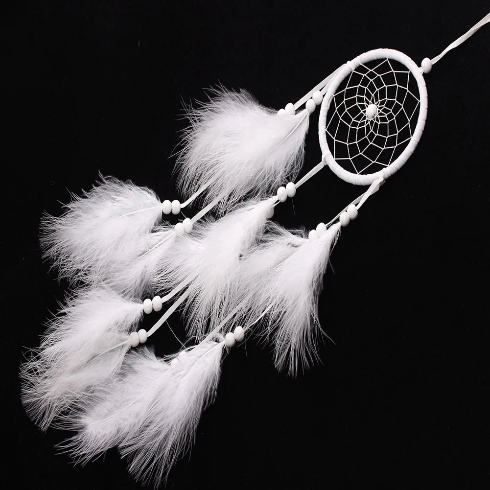 White Feather Dream Catcher Wind Chimes - Handmade Wall Hanging Decor