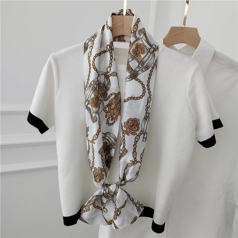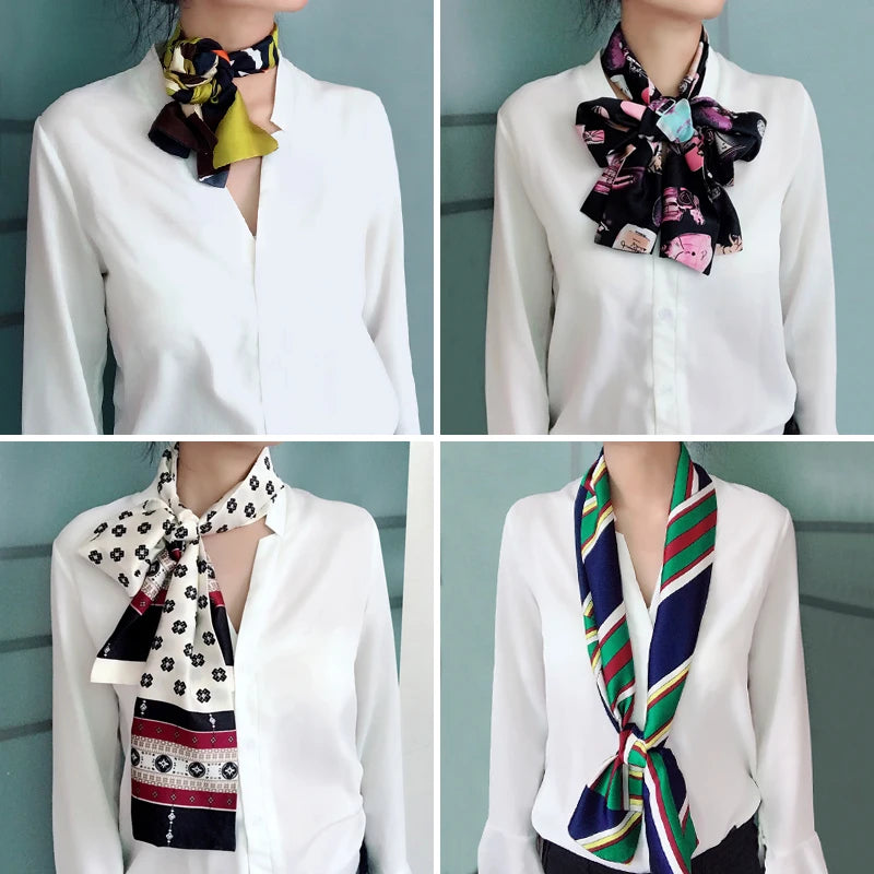 Striped Satin Silk Scarf for Women - Double-Sided Luxury Neck Neckerchief