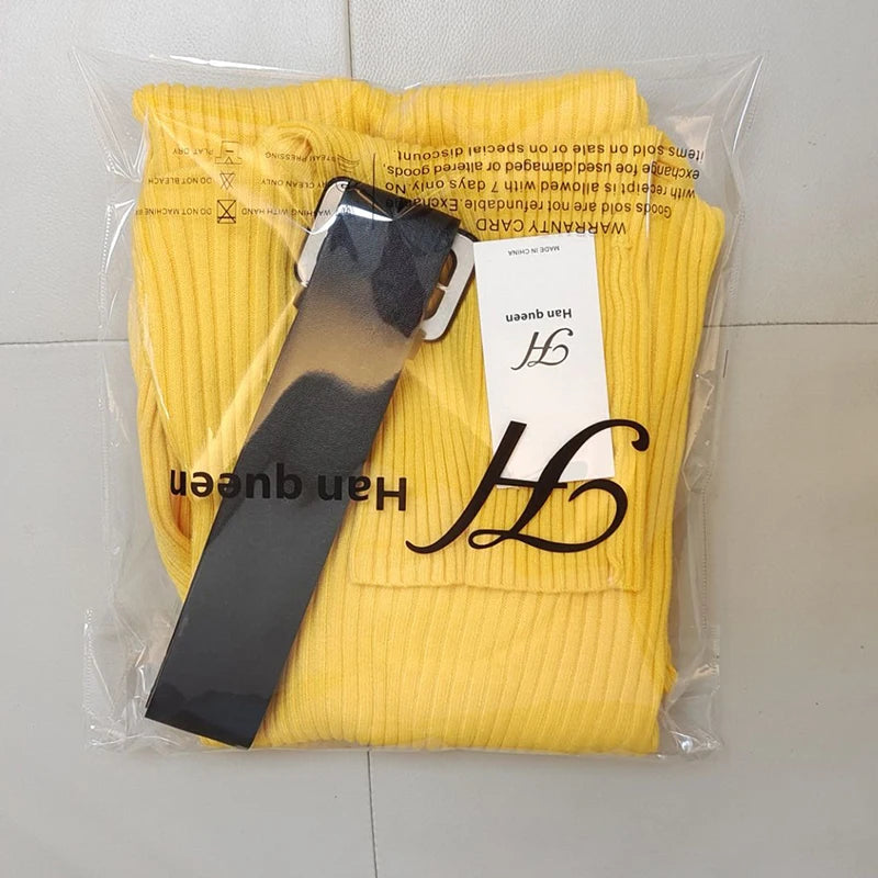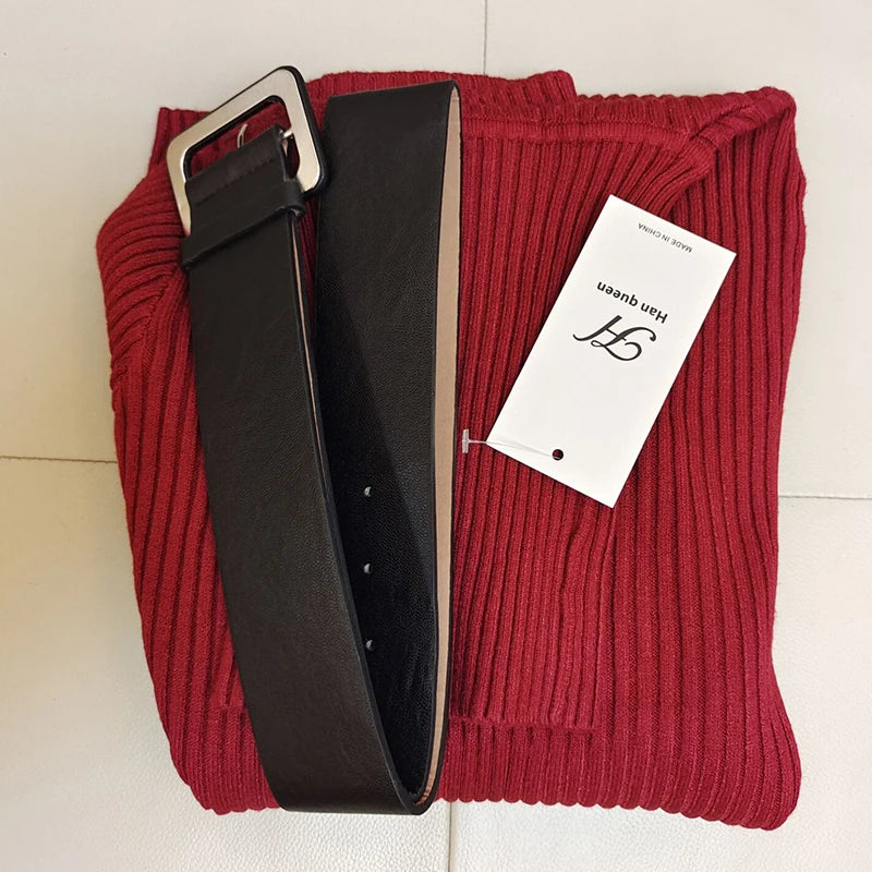 Knitted Turtleneck Bodycon Dress - Soft Elastic Midi Party Dress with Belt for Women