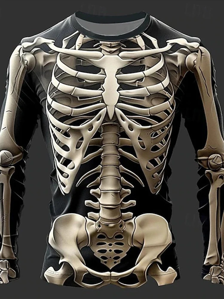 Halloween Skeleton T-Shirt - Men's Long Sleeve Tee With 3D Printed Bones Graphic