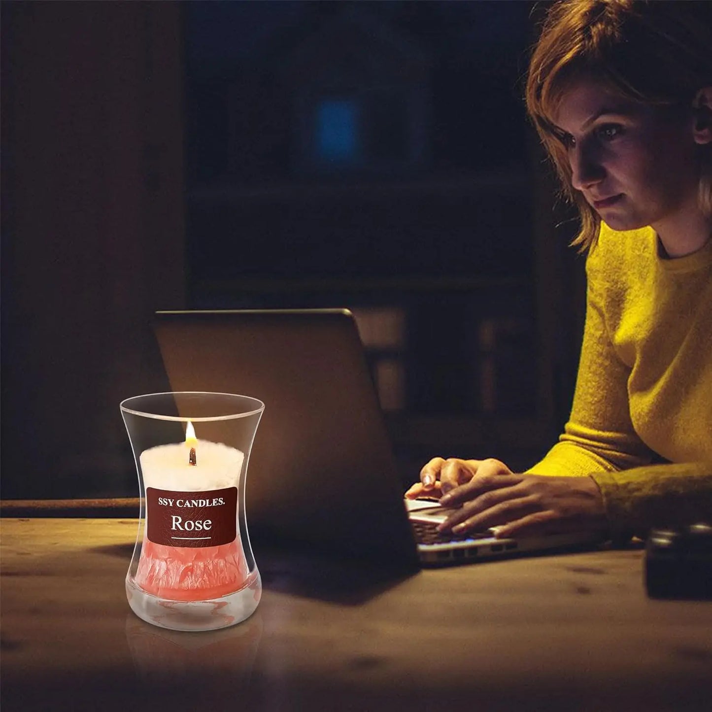 - CLEAN BURN WITH WOODEN WICK - Crafted with care, our aromatherapy candles feature a wooden wick and are handmade to ensure a clean and efficient burn. The combination of the wooden wick and skilled craftsmanship guarantees a long-lasting and soot-free burning experience. Enjoy the flickering glow and soothing rose scent without any worries about smoke or residue.