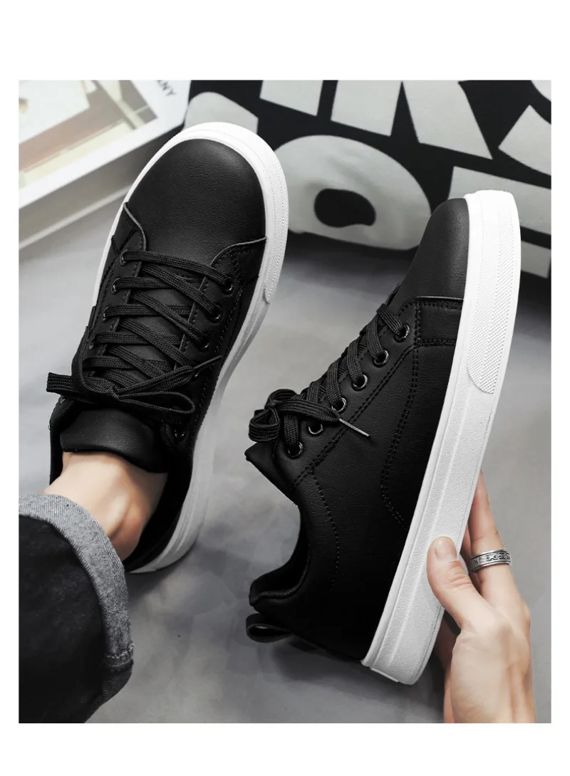 Men's Casual Sneakers - Lightweight PU Leather Shoes | Breathable Flat Heel Footwear