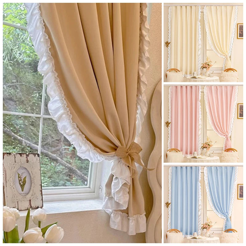 Double Layer Blackout Lace Curtains - Sheer Drapes for Living Room Bedroom