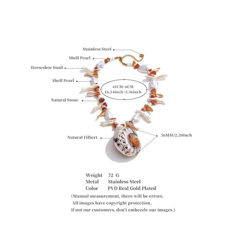 Natural Baroque Pearl Conch Pendant Necklace - Handmade Beach Jewelry for Women with Gift Box