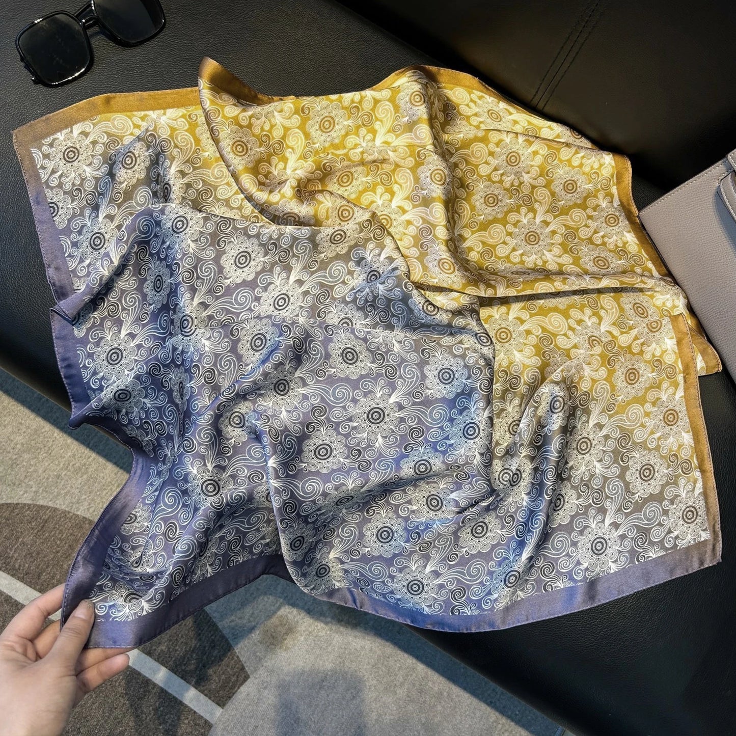 Luxury Silk Plaid Scarf - Soft Satin Neck Tie Hair Band for Women