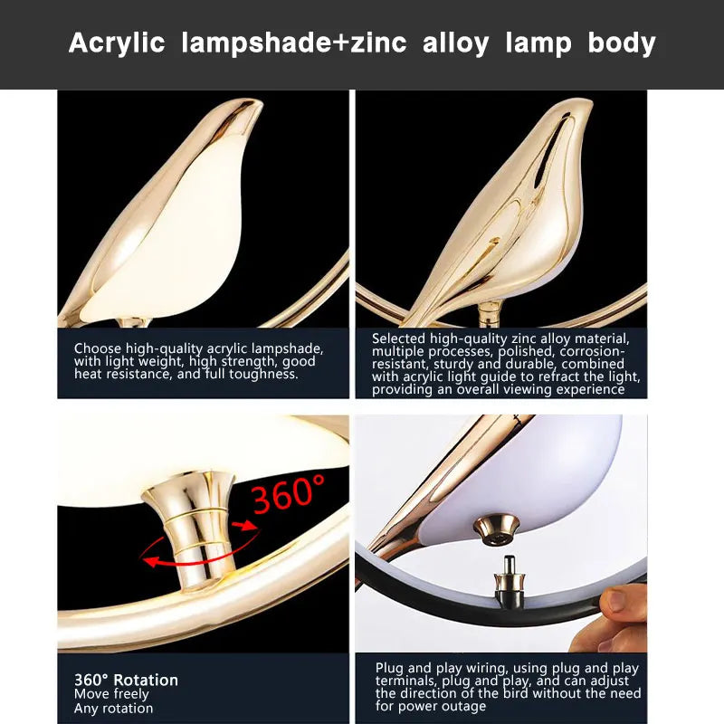 Nordic Magpie Bird LED Cord Pendant Lamps AC85-265V Home Chandelier Lamp for Bedside Bedroom Indoor Black Silver Hanging Lights