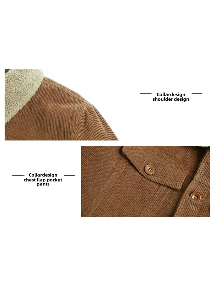 Men's Padded Jacket - Slim Fit Corduroy Parka Coat | Warm Fleece Windbreaker