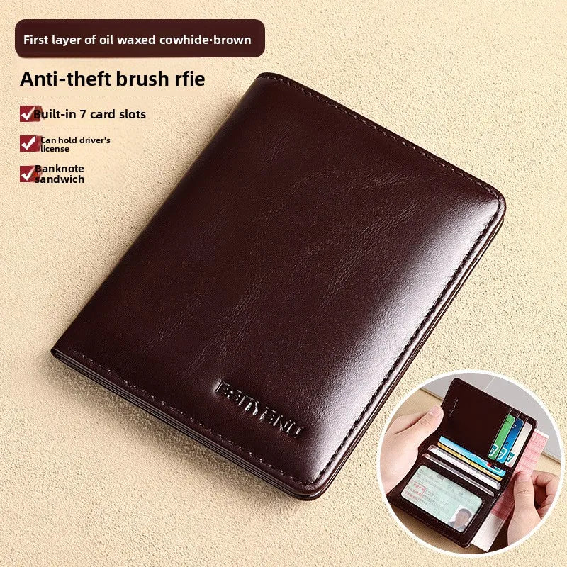 Genuine Leather RFID Blocking Trifold Wallet - Vintage Thin Multi-Function Mens ID Credit Card Holder