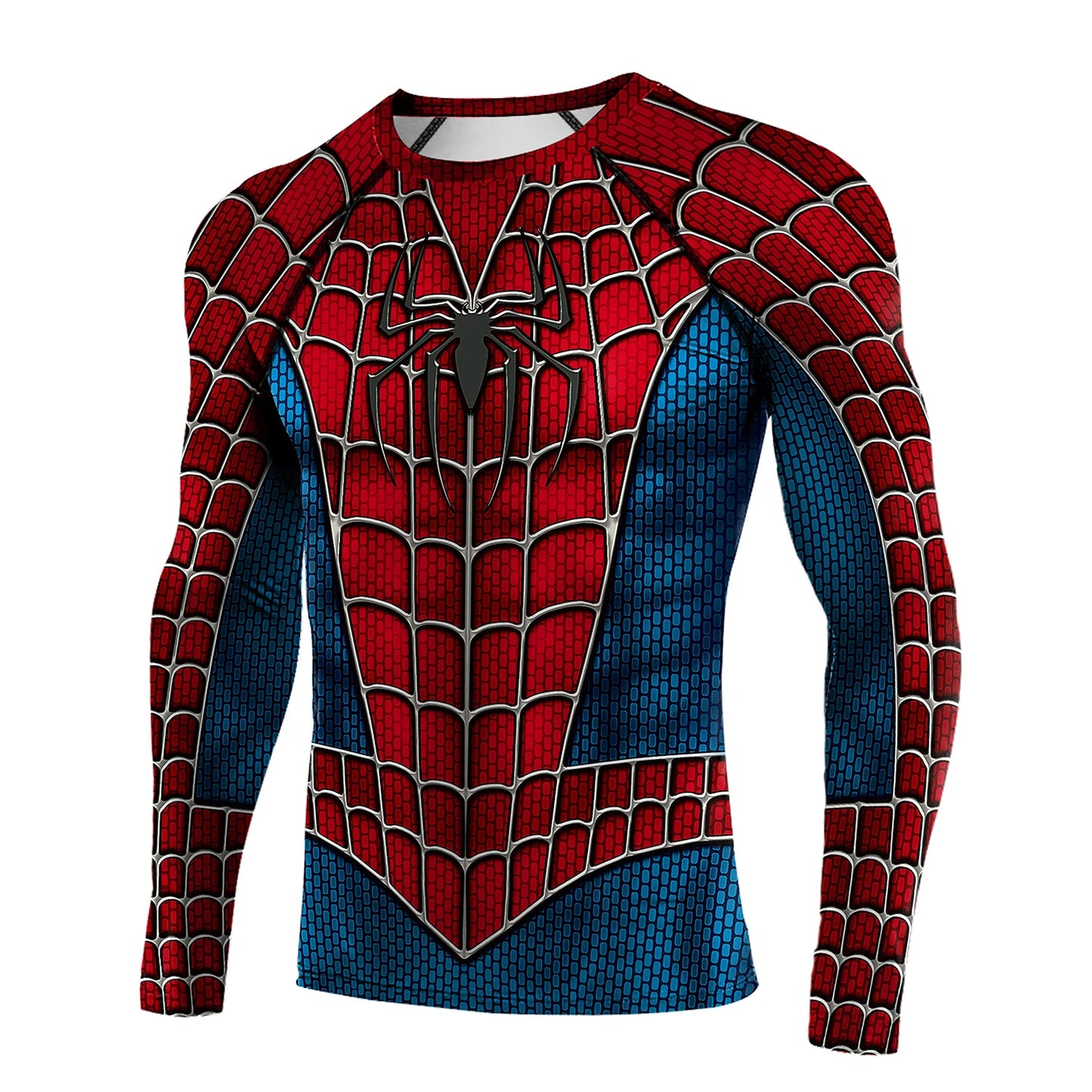 Mens Long Sleeve Spider-Man Compression Shirt - Superhero Cosplay Fitness Top