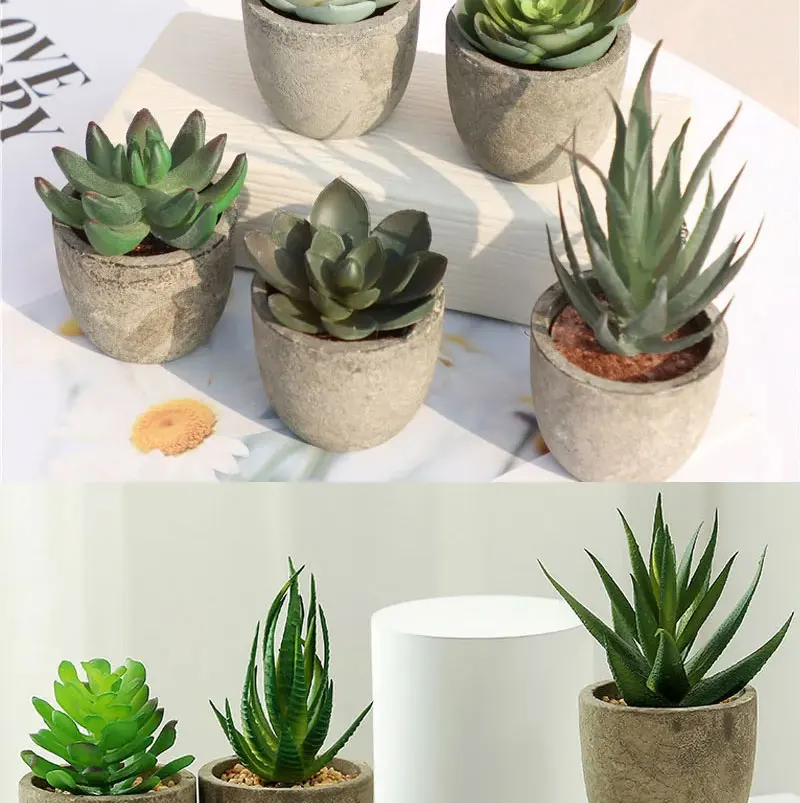Artificial Succulent Plants - Mini Bonsai Decor | Small Desk Plants & Office Table Ornaments