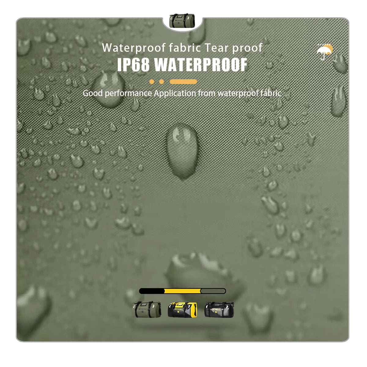 Waterproof Material :This motorcycle duffel bag is made of PVC material,you can confidently use it in rainy conditions without concern for your belongings getting wet. Additionally, it's exceptionally durable, resistant to dirt, easy to clean, and able to withstand tears and wear, making it perfect for safeguarding your possessions.