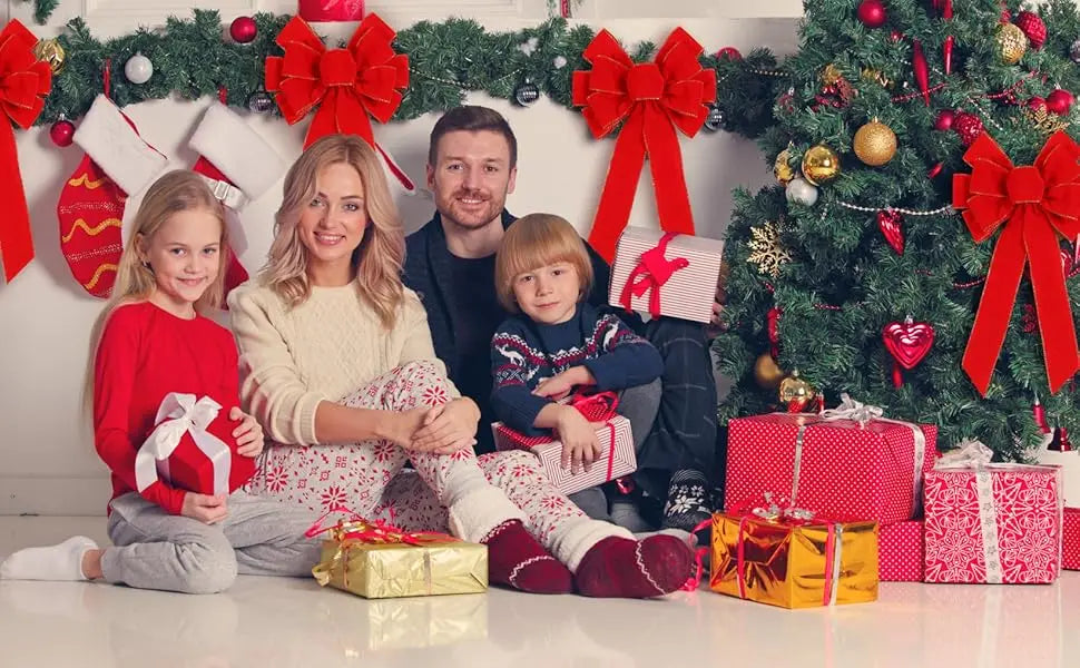 Large Red Velvet Christmas Tree Bow - Outdoor Holiday Decoration with Glitter Gold Edge