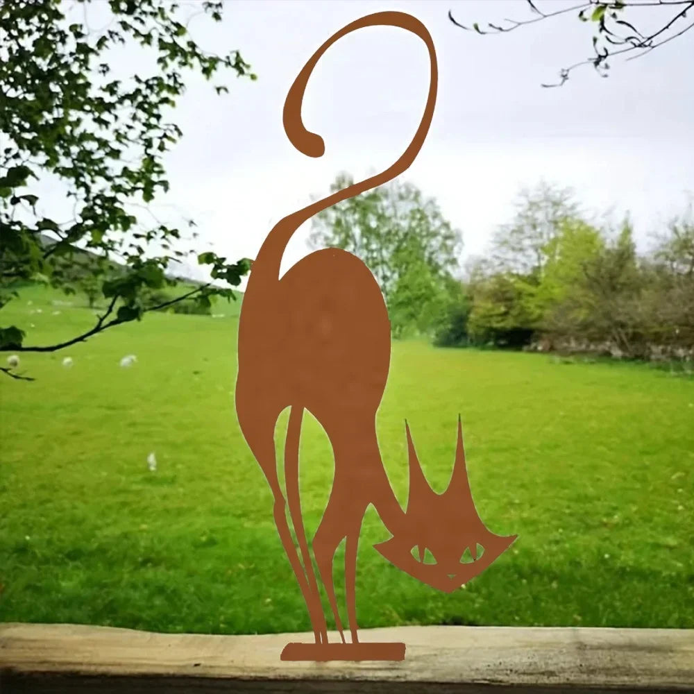 Rusty Wrought Iron Cat Halloween Fence Ornament - Garden Party Decor