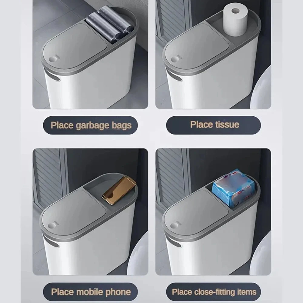Slim Trash Bin with Lid - Space Saving Design for Bathroom Kitchen Living Room