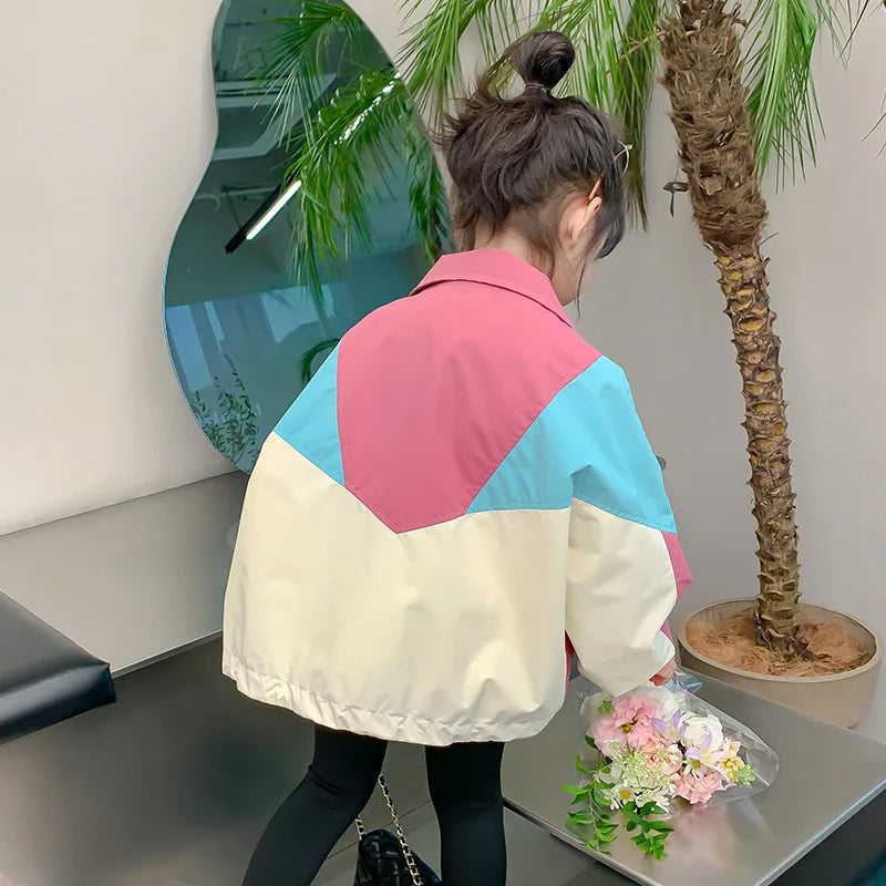 Girls Colorblocked Baseball Trench Jacket - Spring Autumn Casual Outerwear Ages 2-10