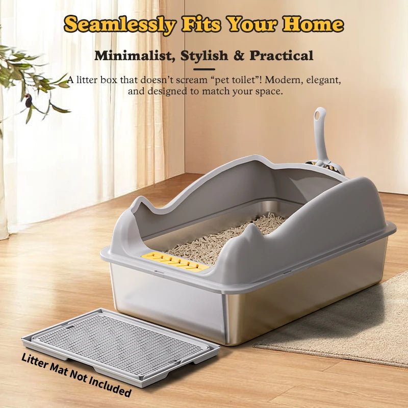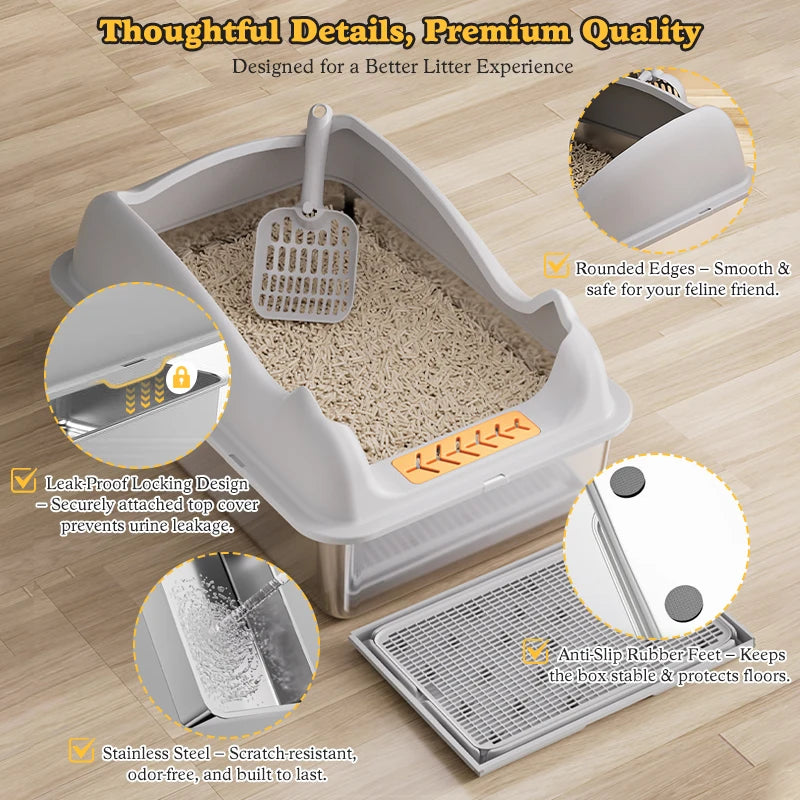 XL Stainless Steel Cat Litter Box with Lid - Easy Clean Odor-Free Anti-Leakage