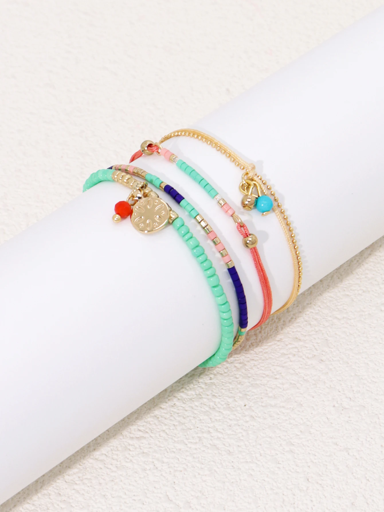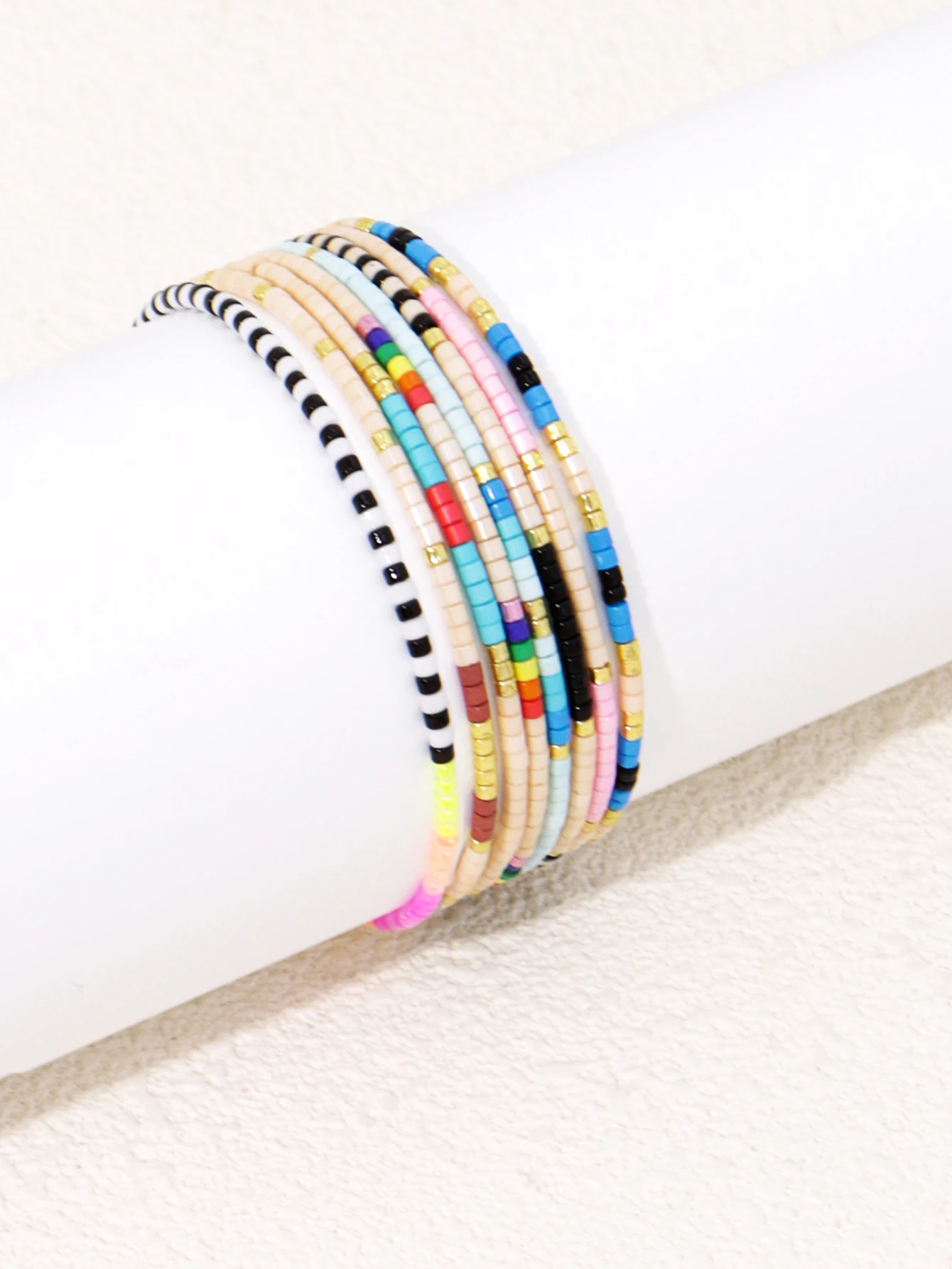 Bohemia Stretch Bracelet - Handmade Gold Color Glass Beads Elastic Beaded Bracelets Set