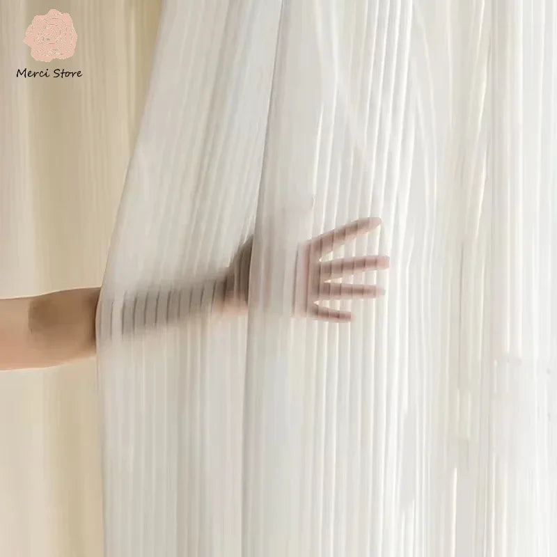 Vertical Striped Sheer Tulle Curtains - Transparent White Blinds for Living Room and Bedroom