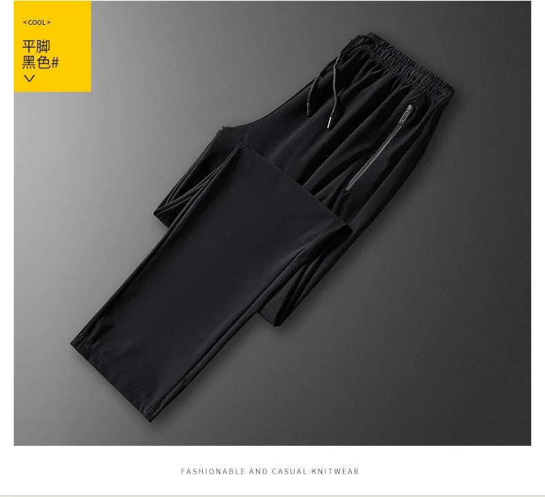 Mens Ice Silk Running Pants - Lightweight Sports Jogging Bottoms with Zip Pockets