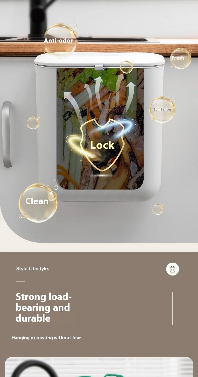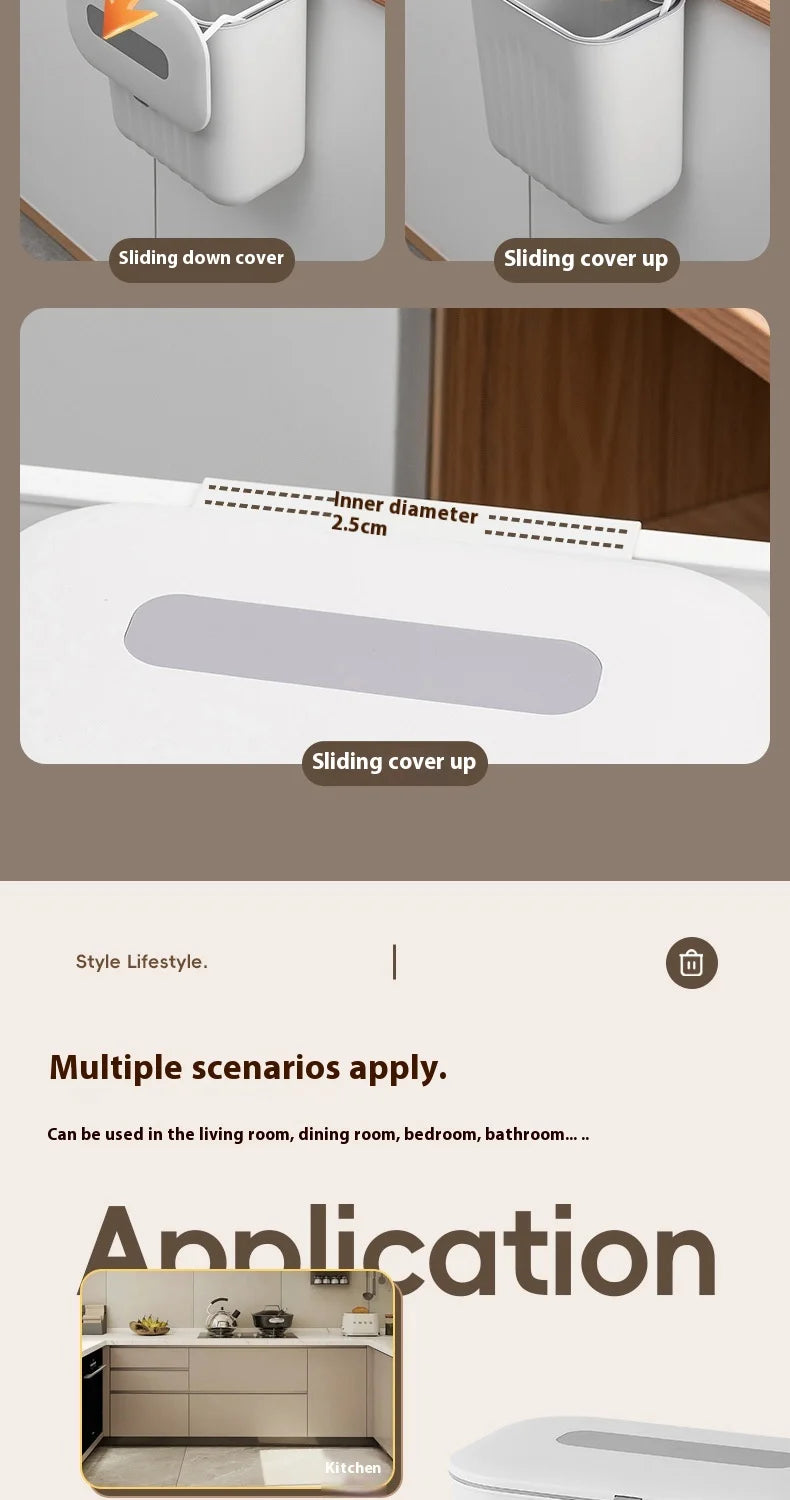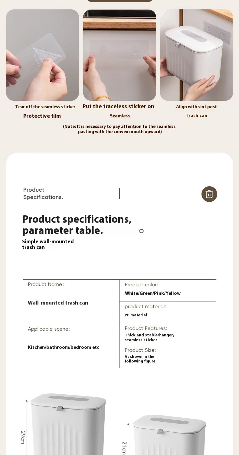 Wall-Mounted Trash Bin with Silicone Handle - Two-Way Opening Lid PP Storage Tube