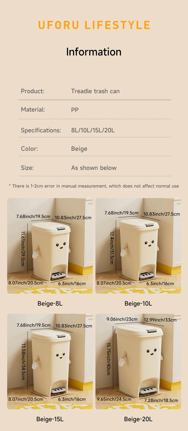Large Capacity Foot Pedal Trash Can - 10L20L Kitchen Dorm Room Bin
