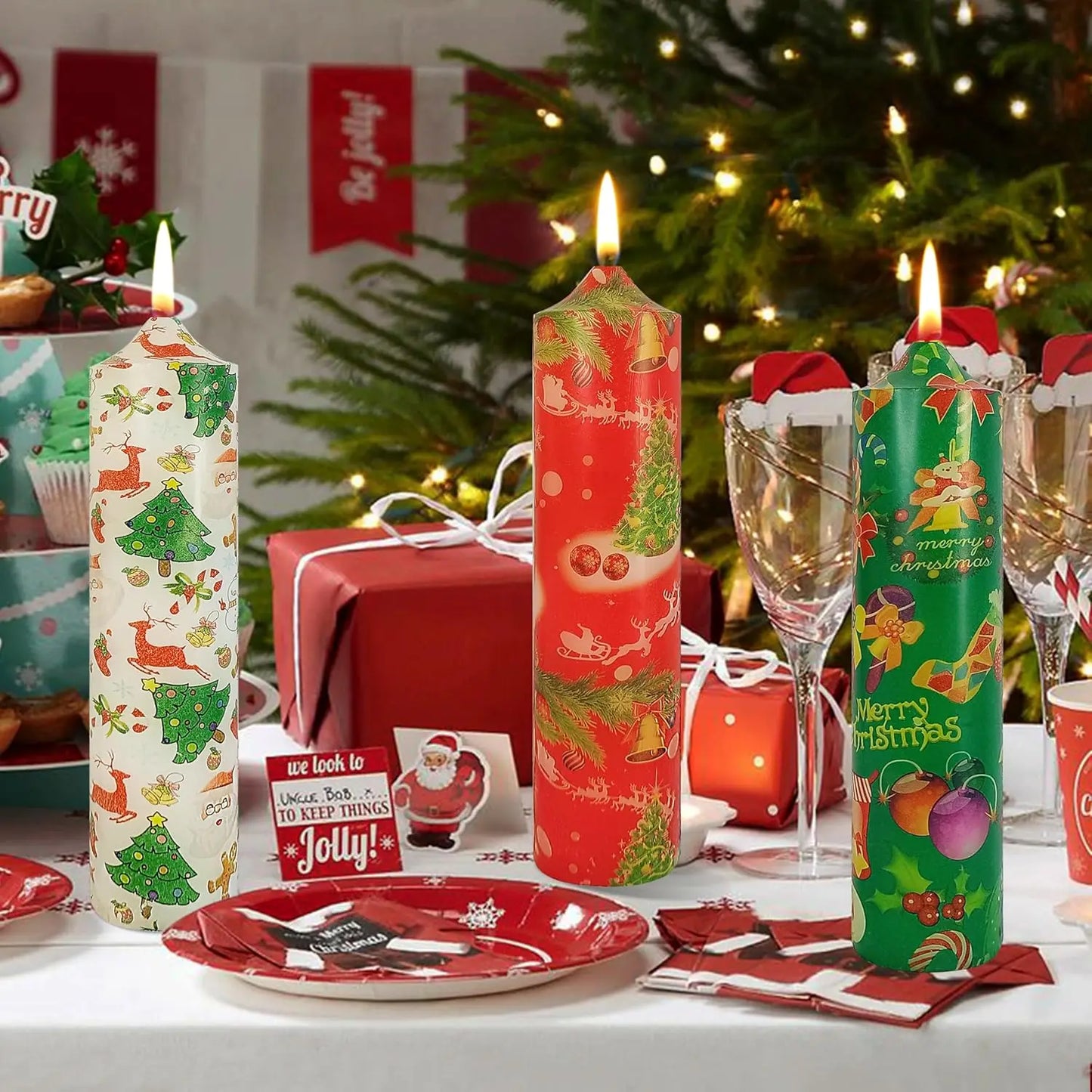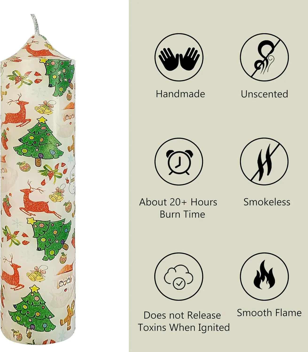 White 7-Inch Unscented Christmas Pillar Taper Candles - Handmade Holiday Decor for Weddings and Home