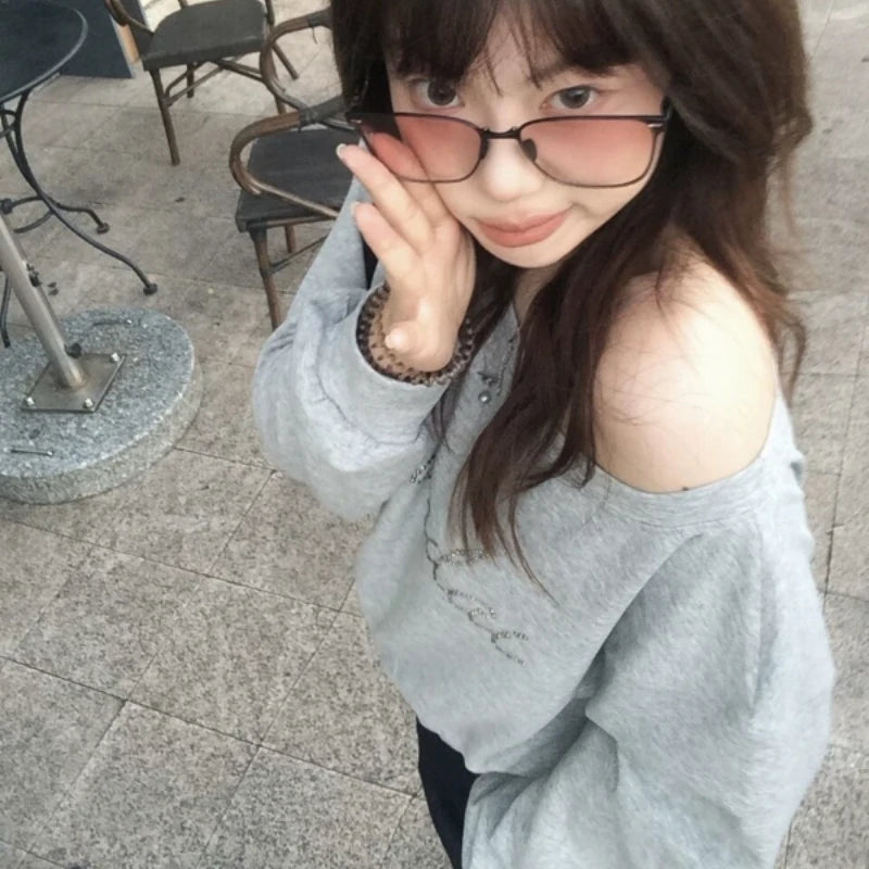 Cropped Off-Shoulder Hoodie - Womens Baggy Fashion Sweatshirt Aesthetic Streetwear