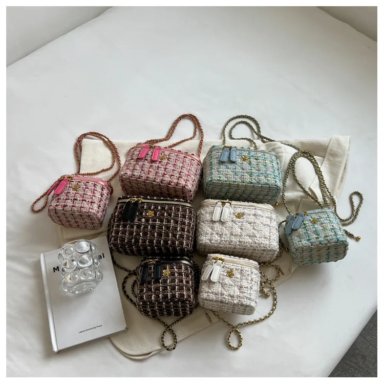 Women Shoulder Bags - Wool Chain Crossbody Bag Small Square Zipper Closure